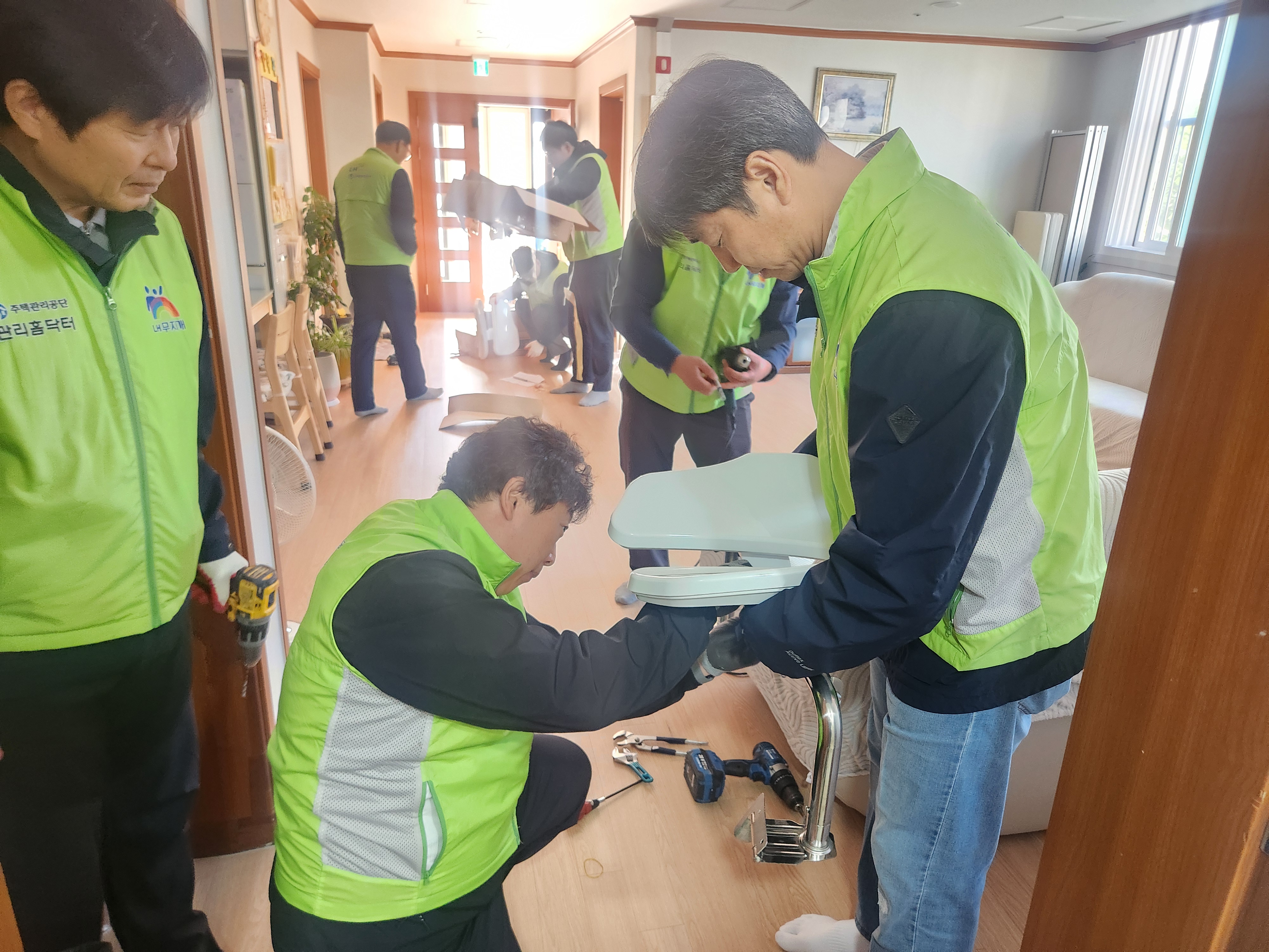 주택관리공단 KOHOM 목포 행복나눔 봉사단 직원분들이 복지관을 찾아 따뜻한 손길을 전해주셨습니다.화장실 등받이 교체 등 환경개선 봉사활동을 통해 이용인들의 안전하고 편안한 공간을 만들어 주셨으며,