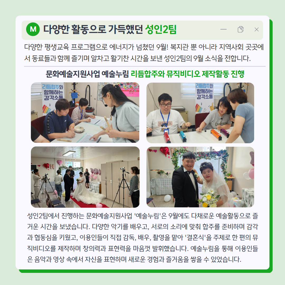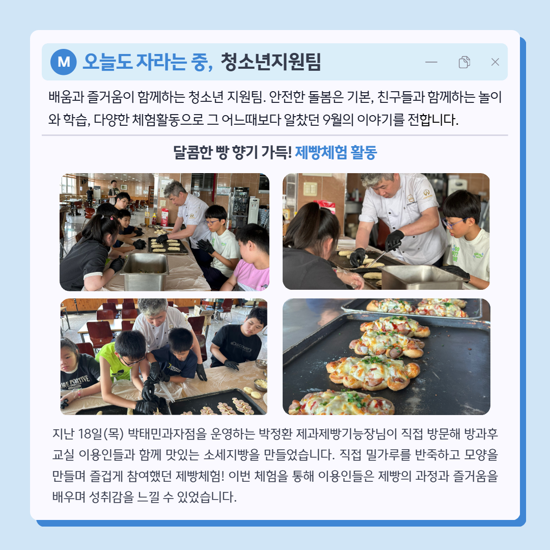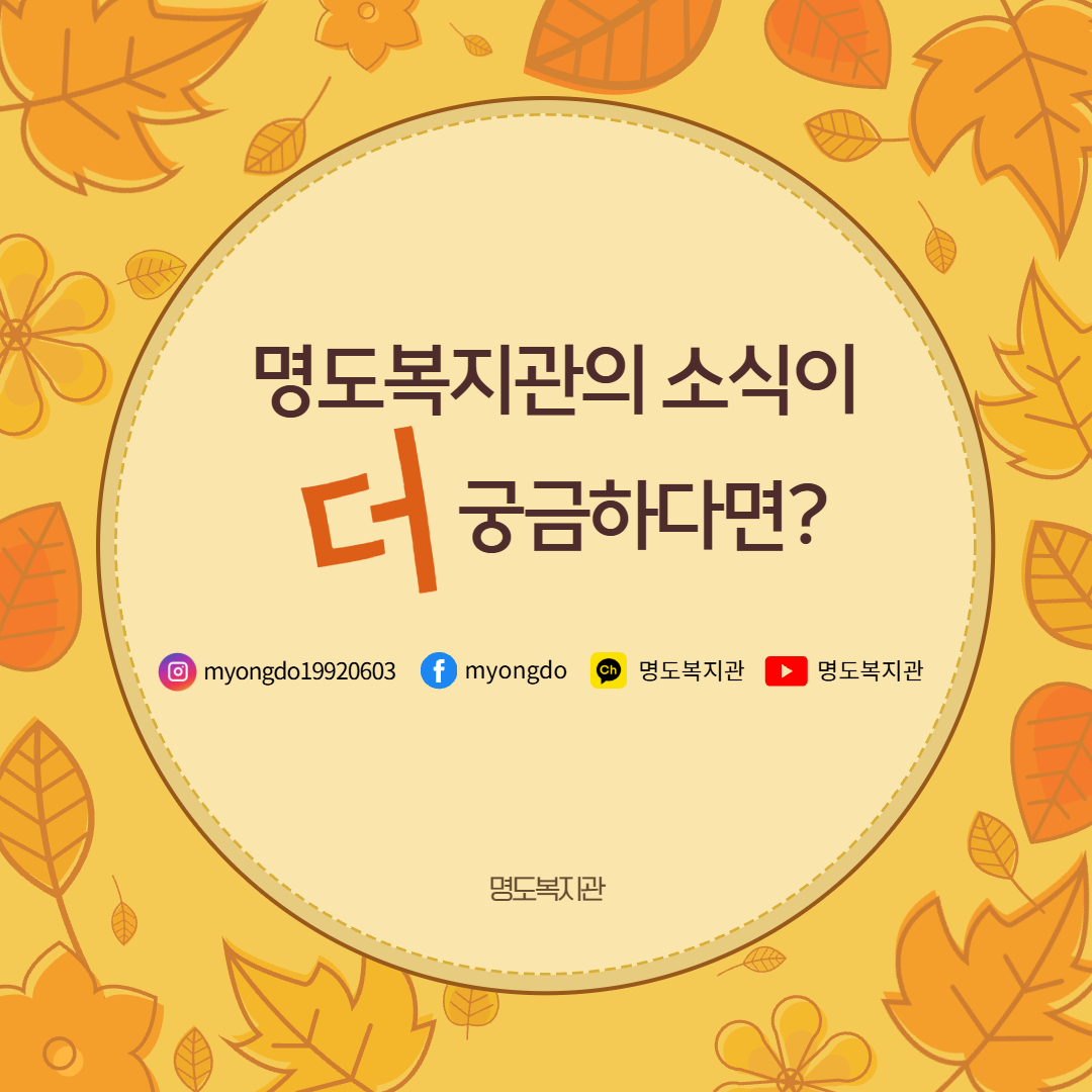 햇살은 한결 부드럽고 바람은 상쾌해지는 계절, 명도복지관의 9월 이야기를 함께 나누며 행복한 시간을 보내시길 바랍니다.