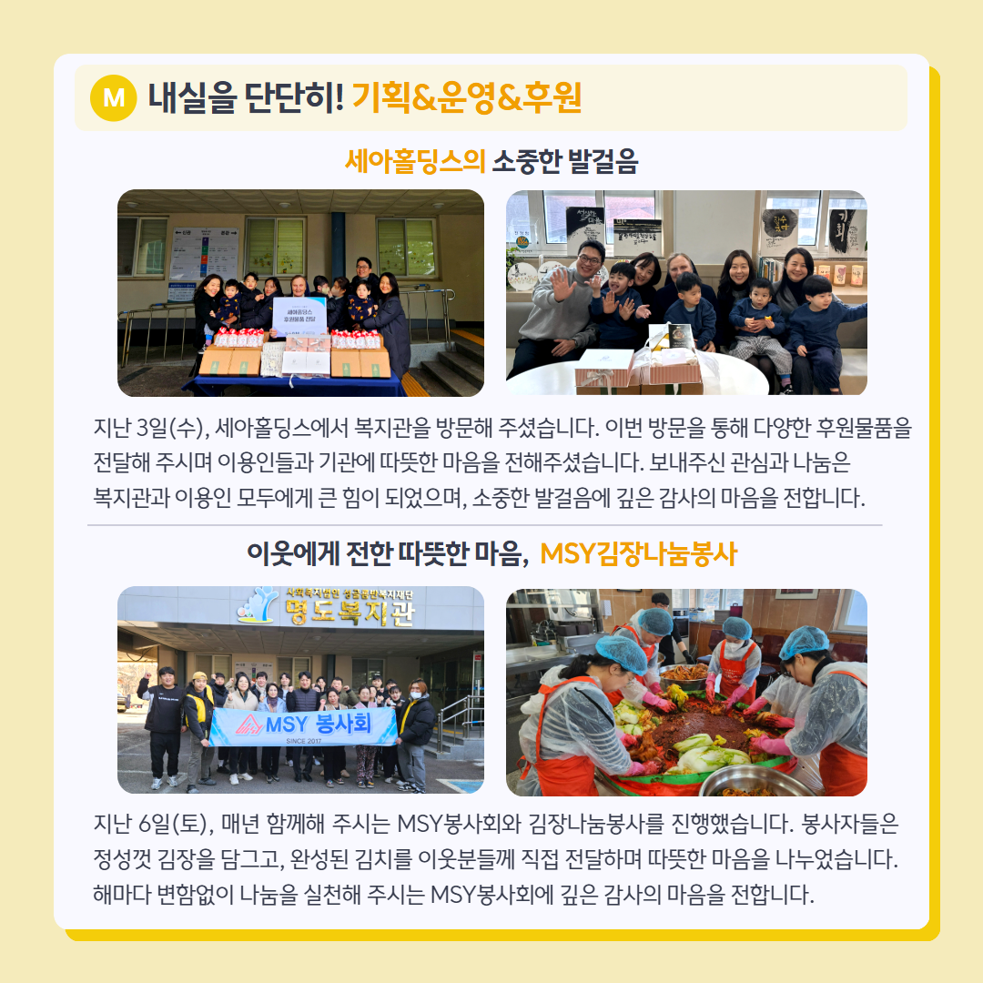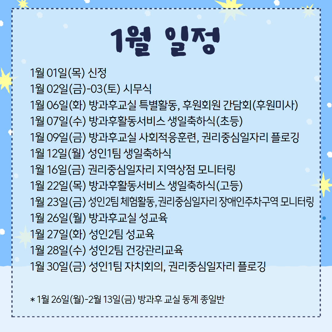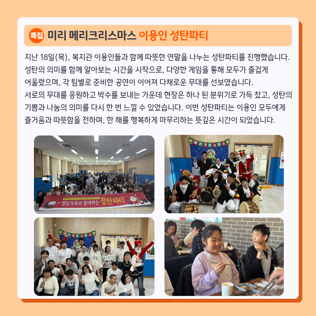 다가오는 새해에도 작은 일상 속에서 희망과 웃음이 이어지길 바라며, 복지관의 12월 소식을 전해드립니다.