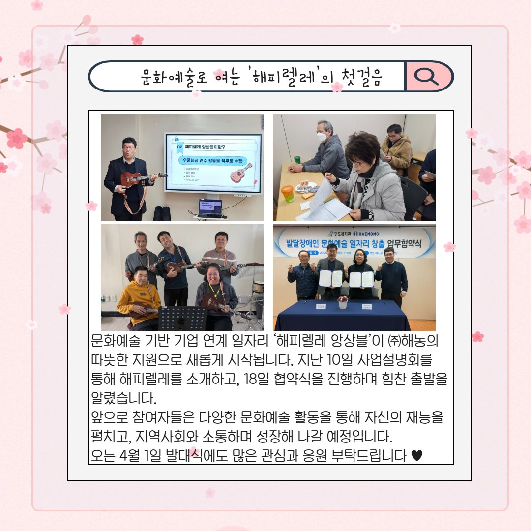 봄 햇살처럼 따뜻한 순간들이 가득하길 바라며, 명도복지관의 3월 소식을 전해드립니다.