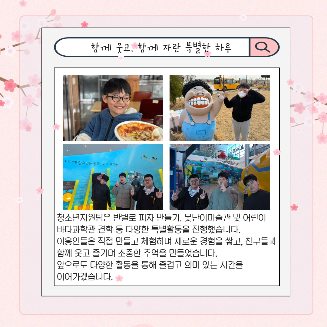 복지관에도 다양한 활동과 웃음이 이어지며 일상 속 작은 변화와 성장을 만들어가고 있습니다.