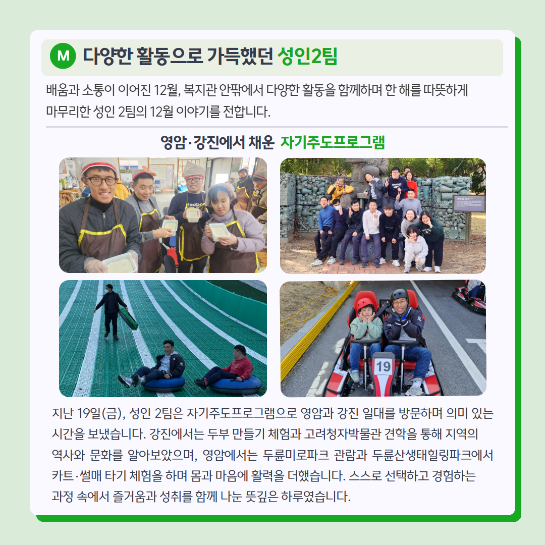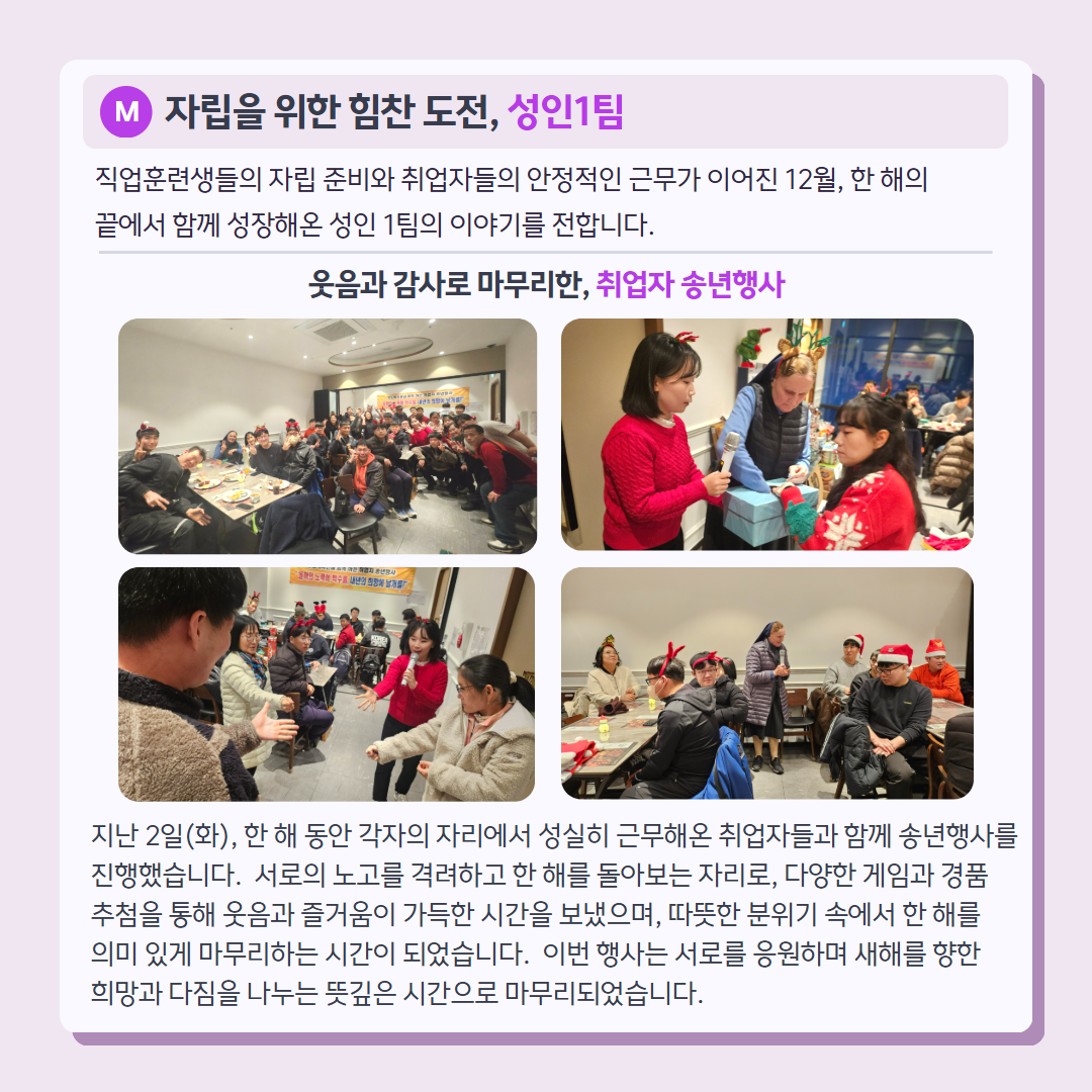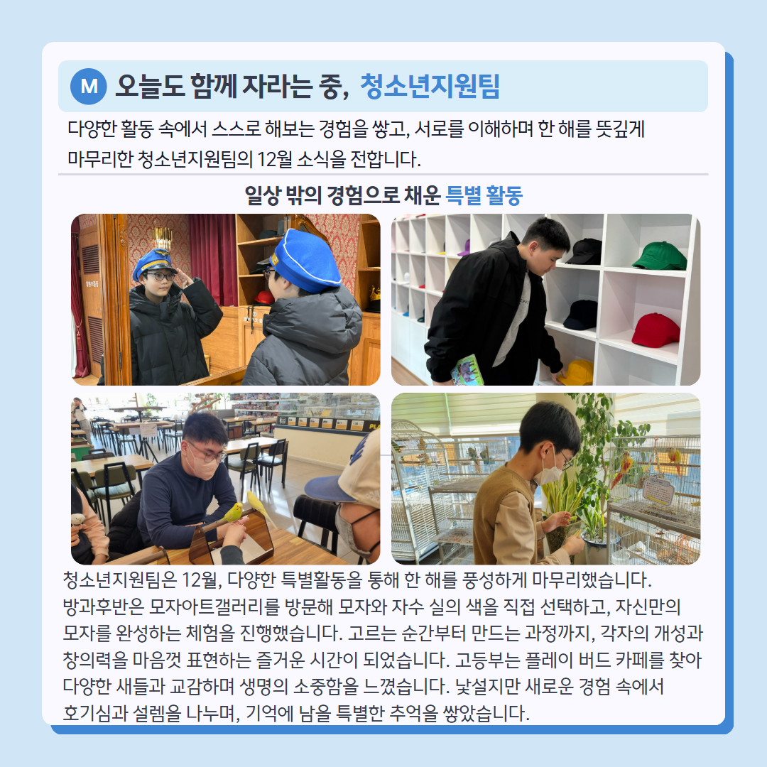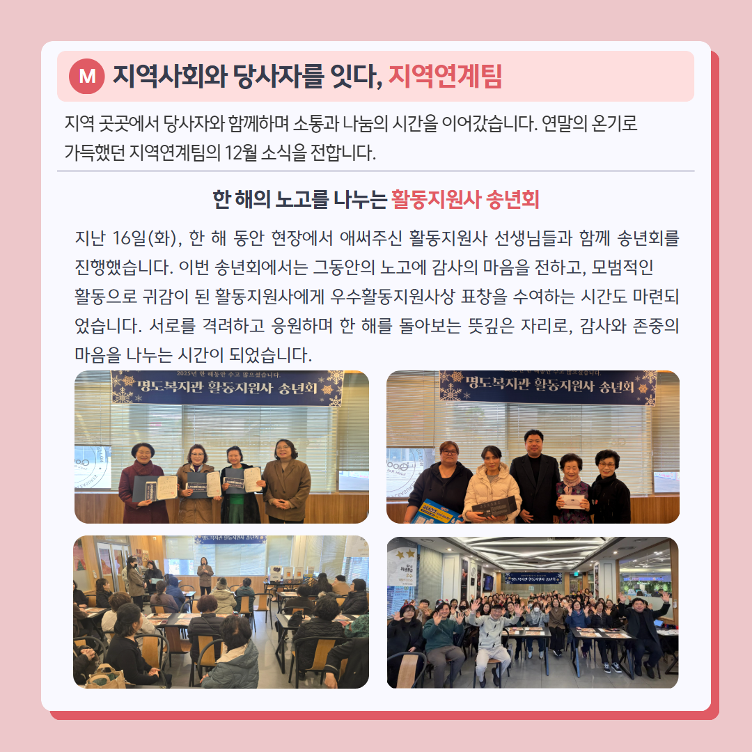 다가오는 새해에도 작은 일상 속에서 희망과 웃음이 이어지길 바라며, 복지관의 12월 소식을 전해드립니다.